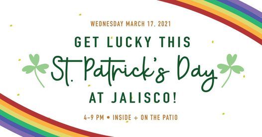 We are celebrating St. Patrickโs Day on Wednesday, March 17 from 4-9 p.m. with a โGet Shamrocked” party, featuring $3 buy one, get one Jalapeno margaritas, a mobile bar and Southern Glazers beer truck.